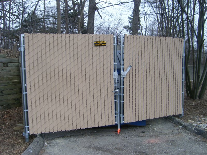 Here is an example of a dumpster gate, notice the double drop rods and secure latch.